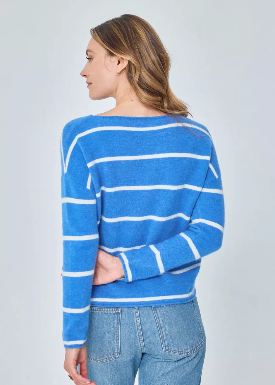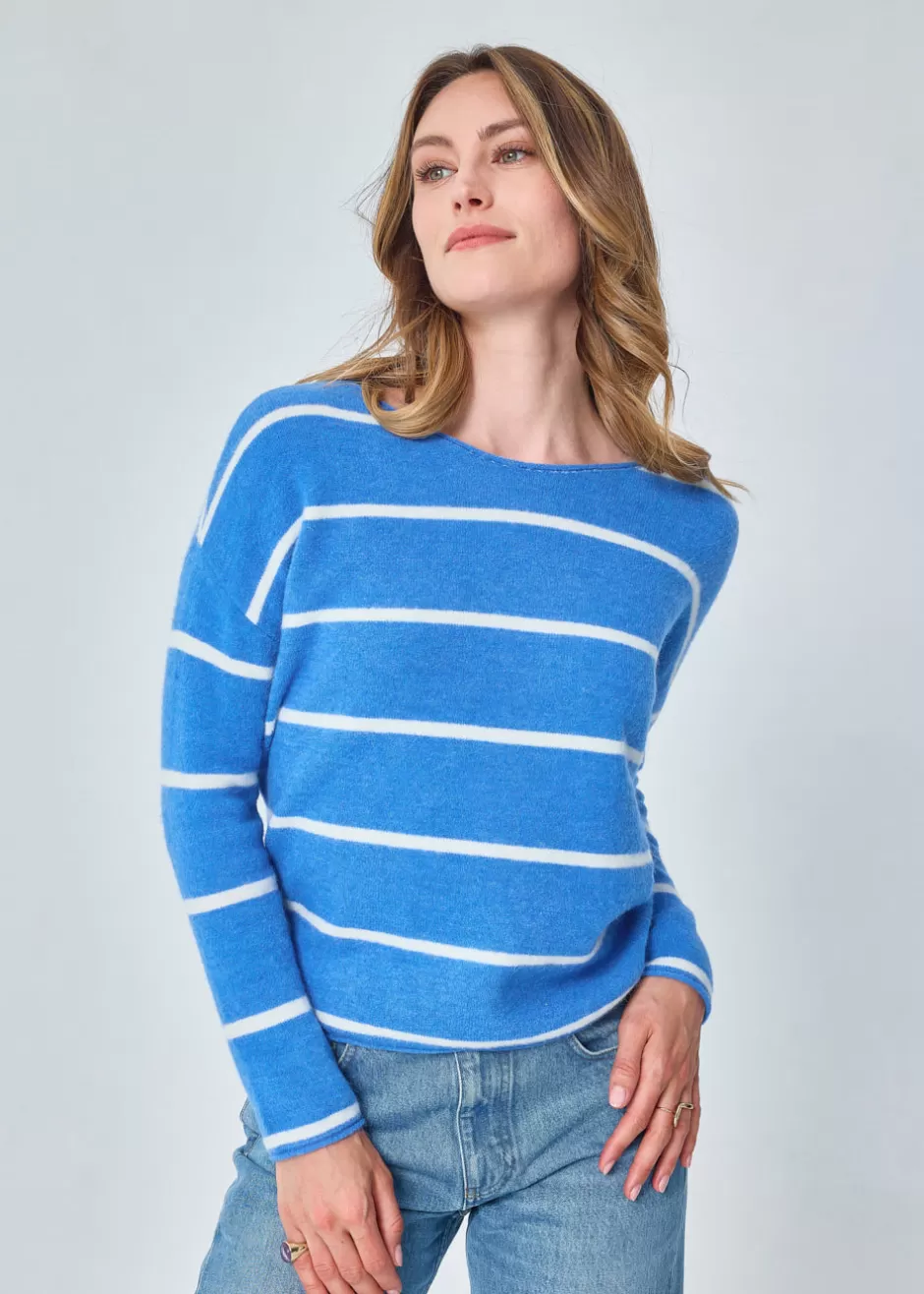 Les rayures blanches apportent une touche chic à ce pull fluide.
