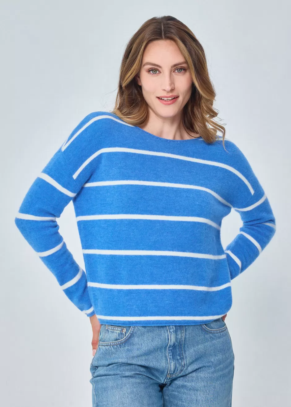 Pull Miriam• Rayures blanches élégantes.• Coupe fluide.• Col rond classique.Le détail coup de :Les rayures blan…